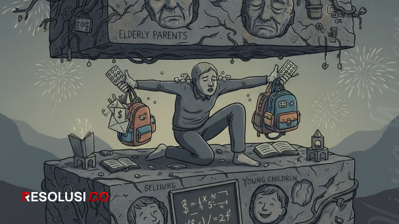 • Tahun Baru justru menjadi periode paling menekan bagi generasi sandwich, ketika biaya pendidikan anak, kesehatan orang tua, cicilan, dan kebutuhan hidup datang bersamaan, sementara pendapatan stagnan dan tabungan nyaris tak ada.