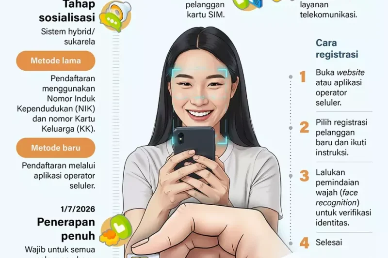 26 Desember 2025 - 09:56 WIB Registrasi SIM Card Tak Lagi Pakai NIK Saja, Biometrik Wajah Jadi Syarat Baru JAKARTA – Pemerintah akan menerapkan sistem registrasi kartu SIM (Subscriber Identity Module) berbasis biometrik wajah guna meningkatkan keamanan