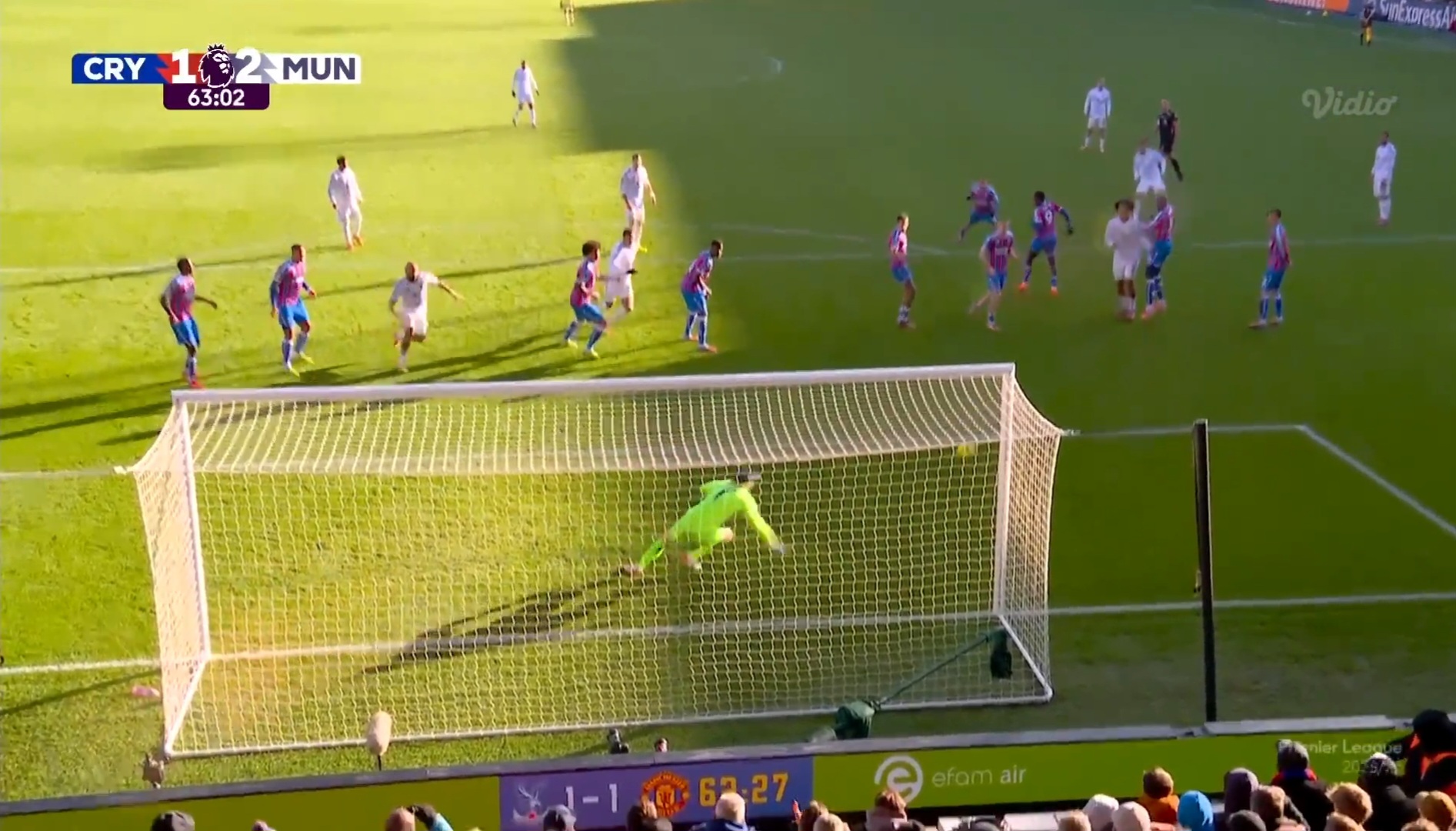 Hanya sembilan menit berselang, Setan Merah membalikkan keadaan. Pelanggaran Marc Guehi terhadap Mason Mount berbuah tendangan bebas pendek dari Fernandes yang langsung disambar Mount dengan tembakan rendah ke pojok kiri gawang. Henderson tak mampu menjangkau bola, dan MU unggul 2-1.