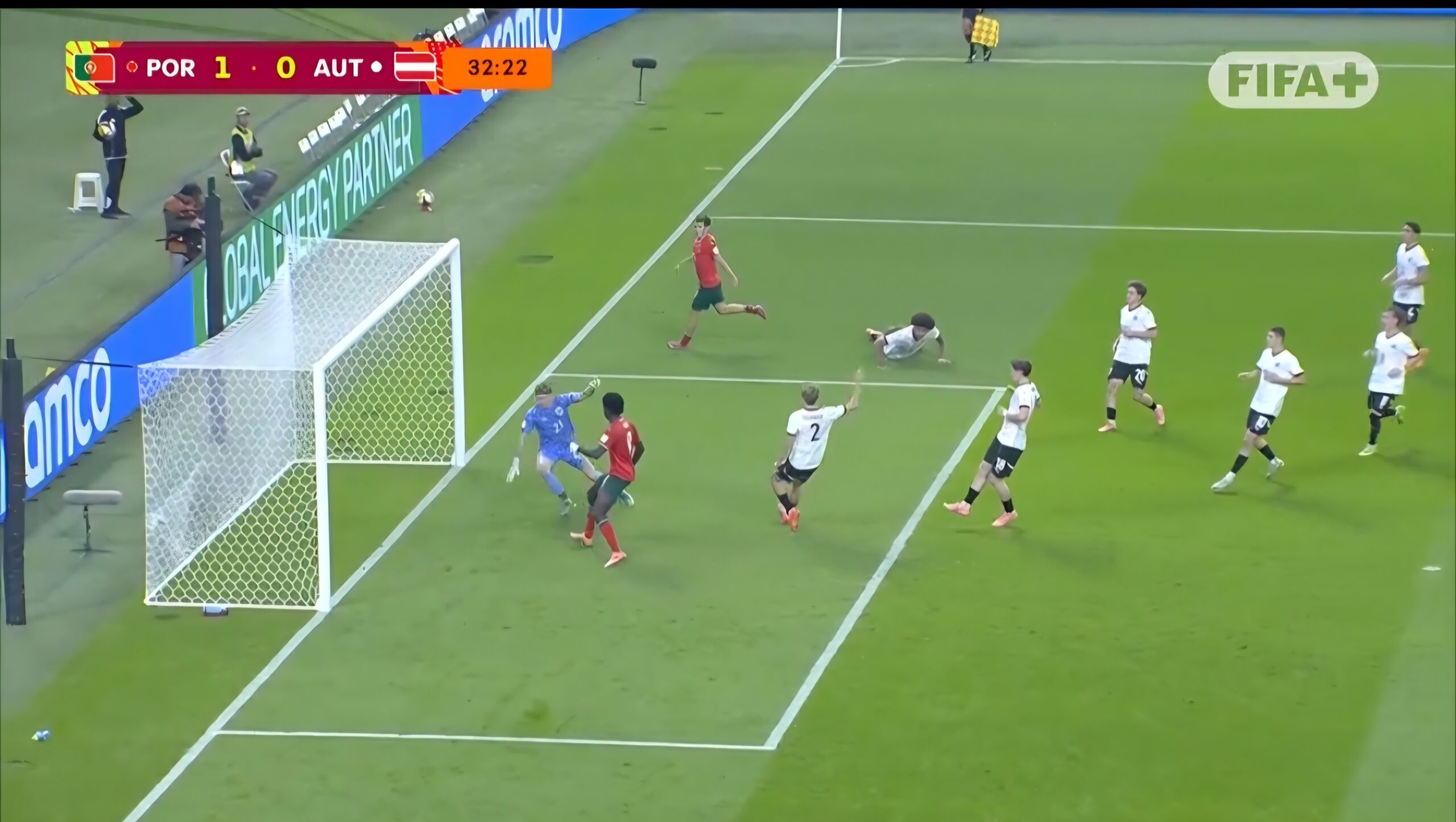 Gol tunggal yang menentukan nasib pertandingan lahir pada menit ke-32. Bermula dari aksi Cunha di sisi kanan yang melepaskan umpan tarik, Anisio Cabral berdiri bebas tanpa kawalan dan menyontek bola dengan tenang ke gawang Austria. Itu menjadi gol ketujuh Cabral sepanjang turnamen, sekaligus mengukuhkan perannya sebagai motor serangan Portugal.