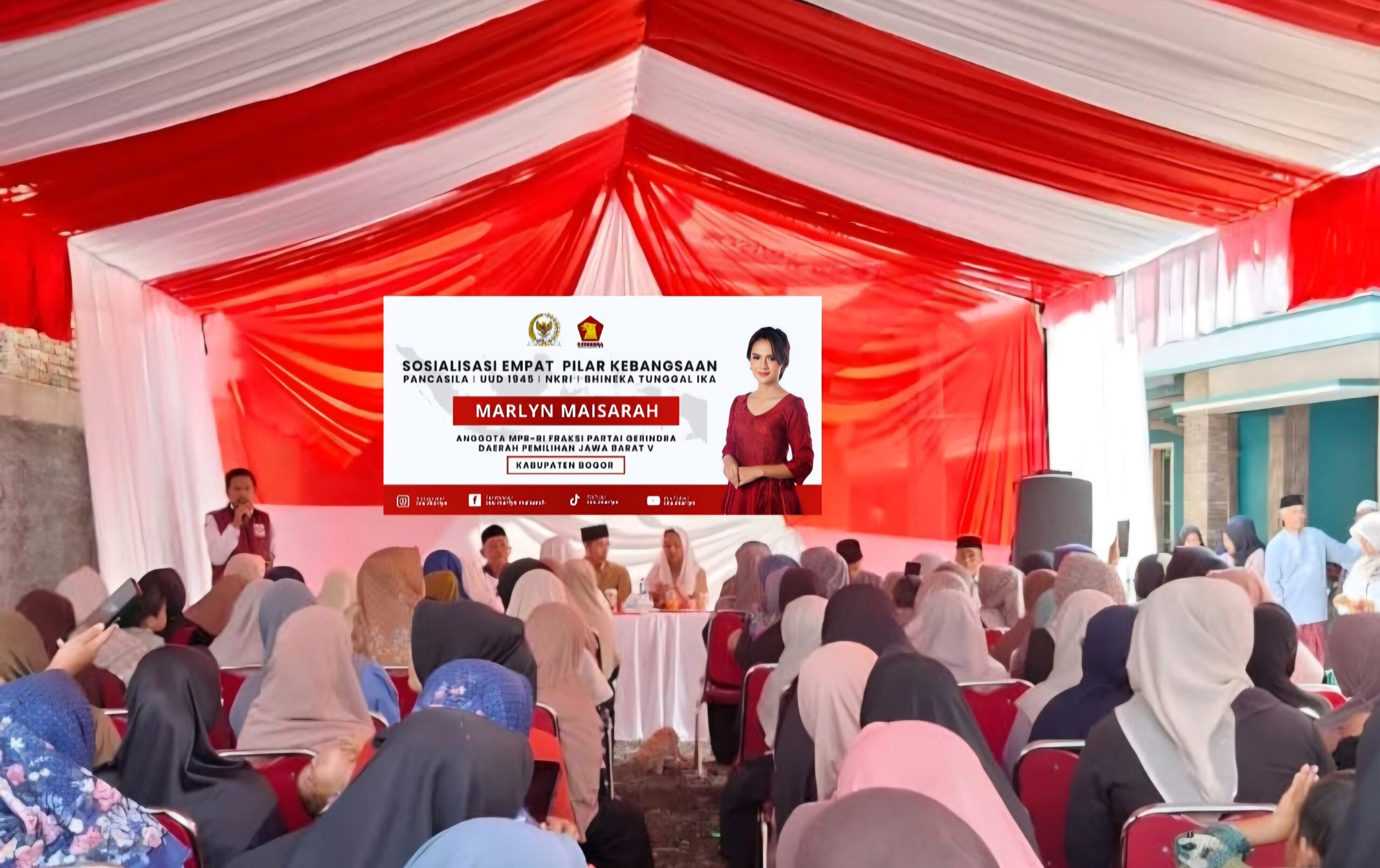 Resolusi.co, Bogor — Anggota DPR/MPR RI, Marlyn Maisrah, menggelar Sosialisasi Empat Pilar Kebangsaan bersama struktur PAC dan Ranting Partai Gerindra Kecamatan Babakan Madang dan Sukaraja di Aula Gerindra Kabupaten Bogor. Kegiatan ini menegaskan peran strategis partai politik di tingkat akar rumput dalam membumikan nilai Pancasila, UUD NRI 1945, NKRI, dan Bhinneka Tunggal Ika, sekaligus menyiapkan kader dan generasi muda menuju Indonesia Emas 2045.