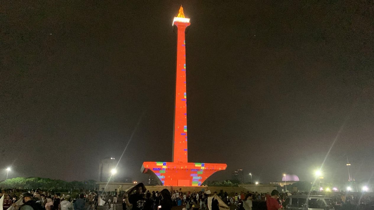 Tanpa Kembang Api, Ribuan Warga Saksikan Video Mapping Spektakuler di Monas Saat Countdown Tahun Baru
